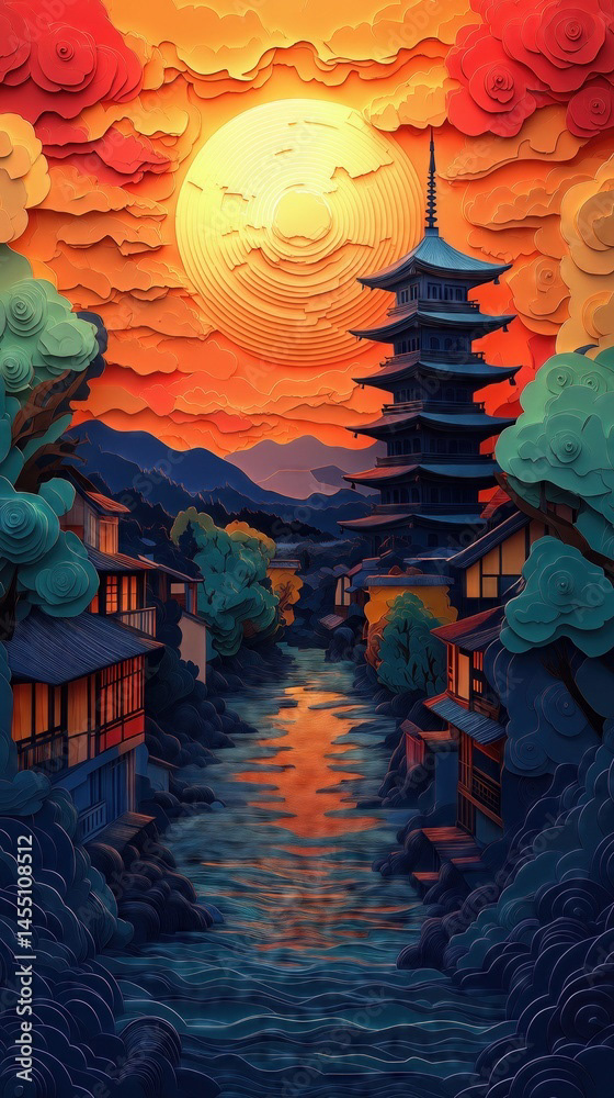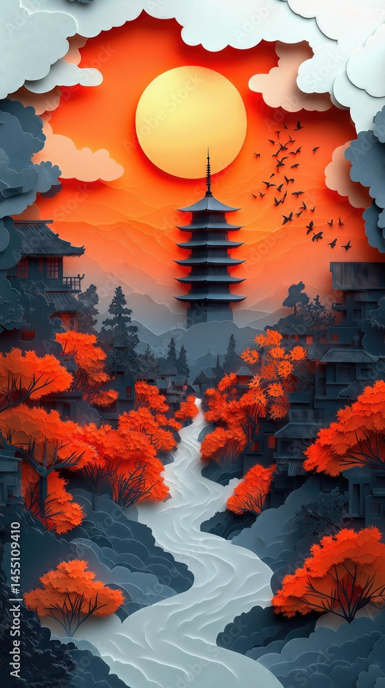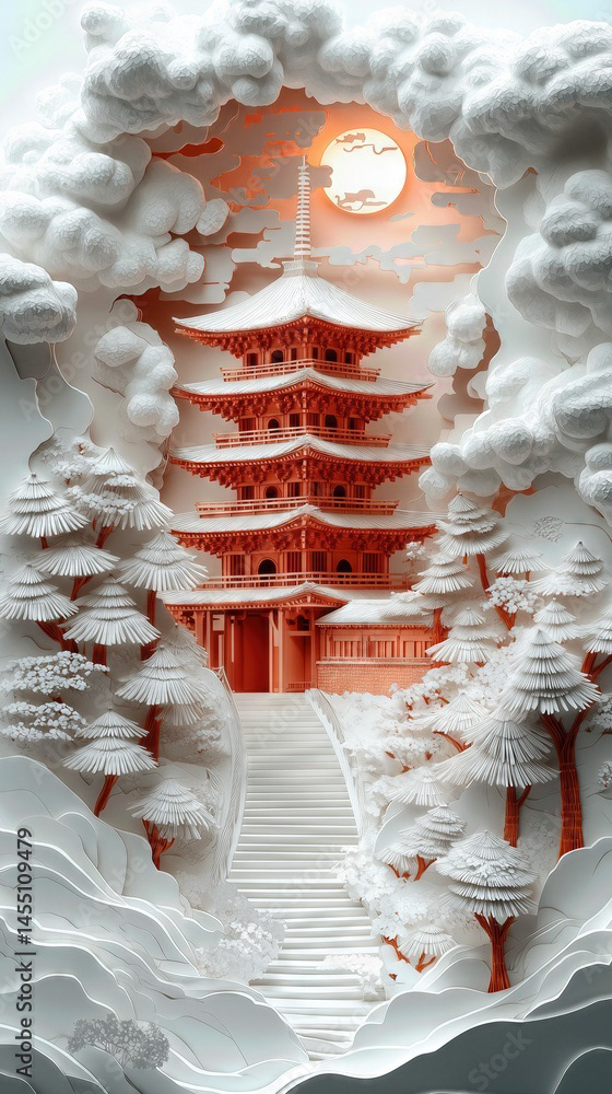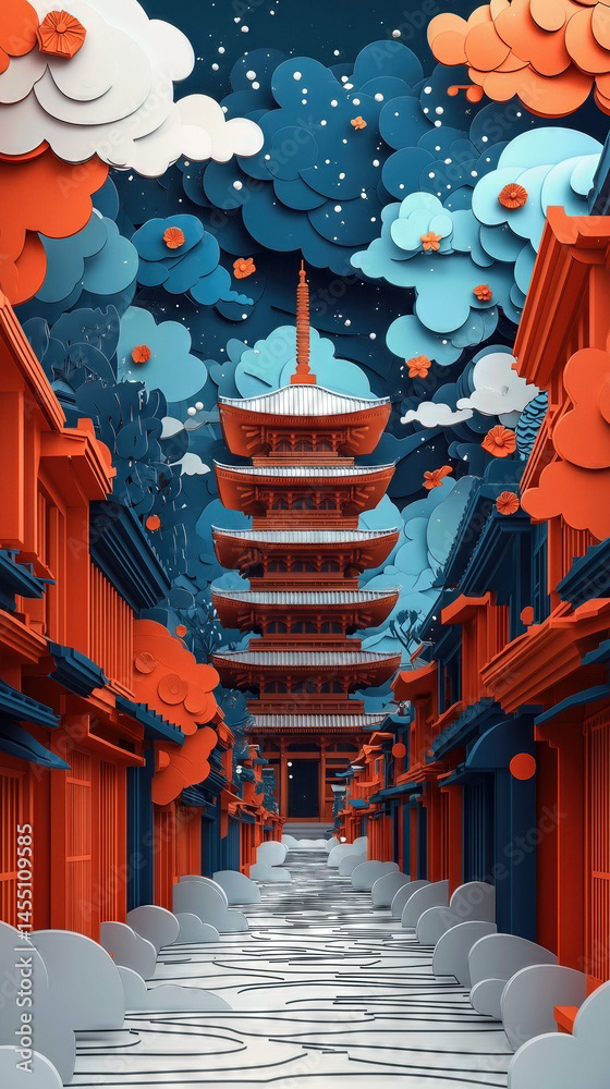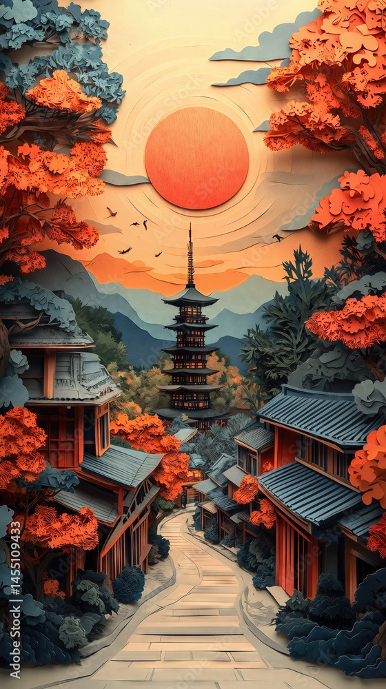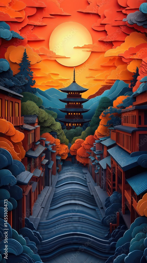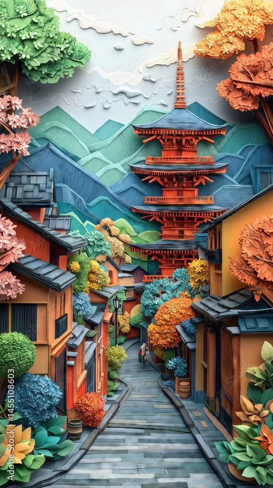 Papercut Kyoto Japan Pagoda