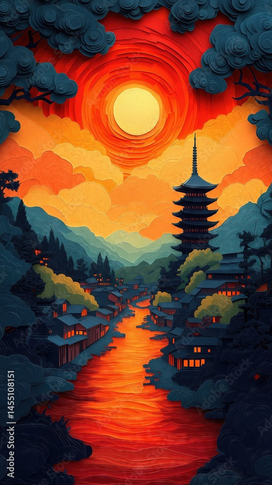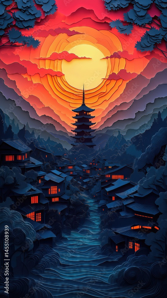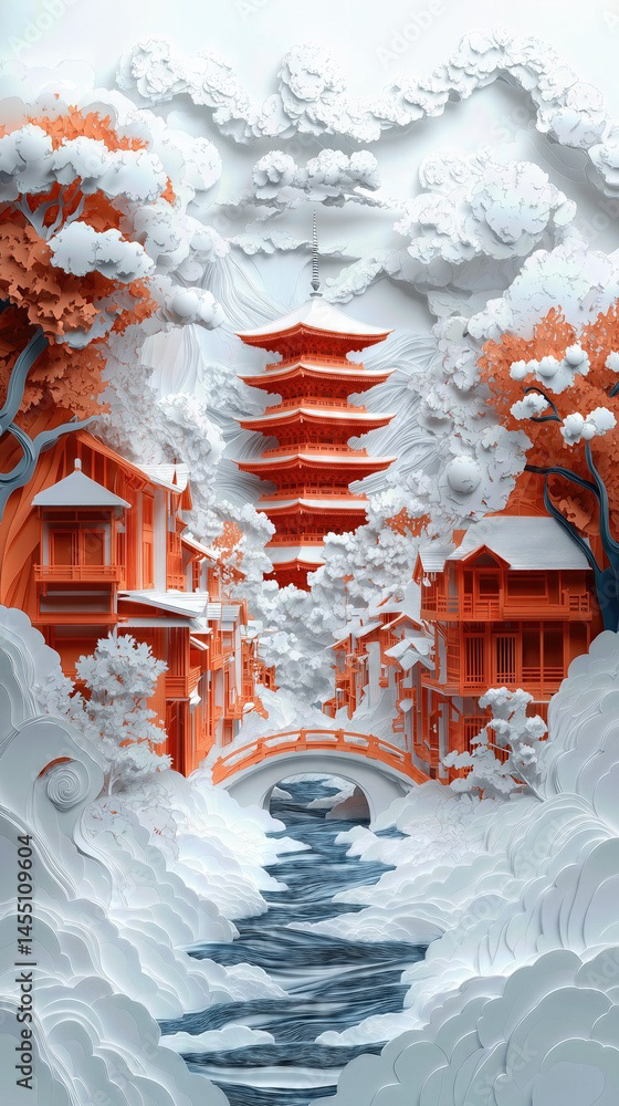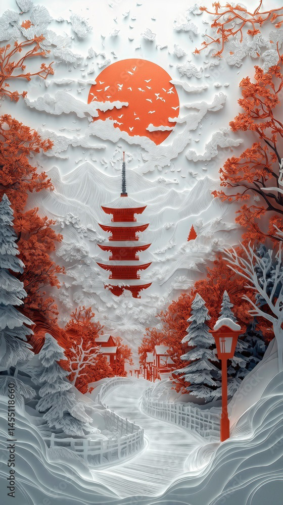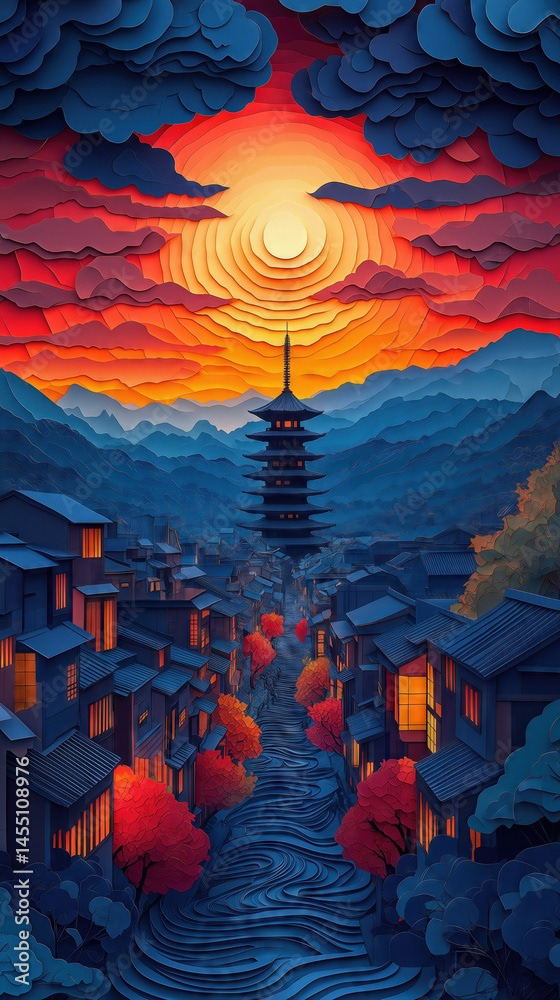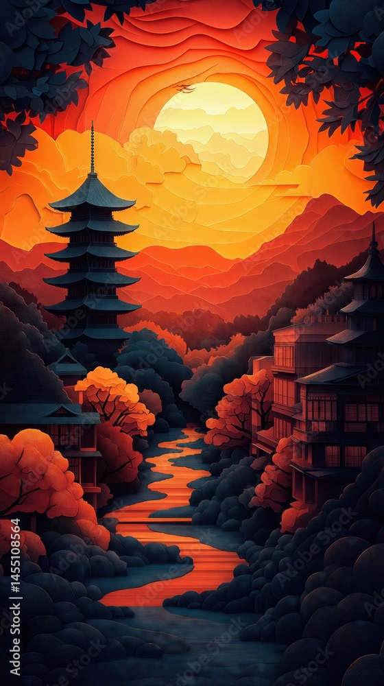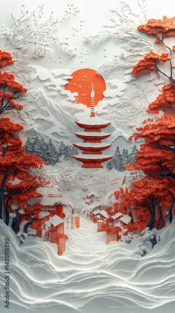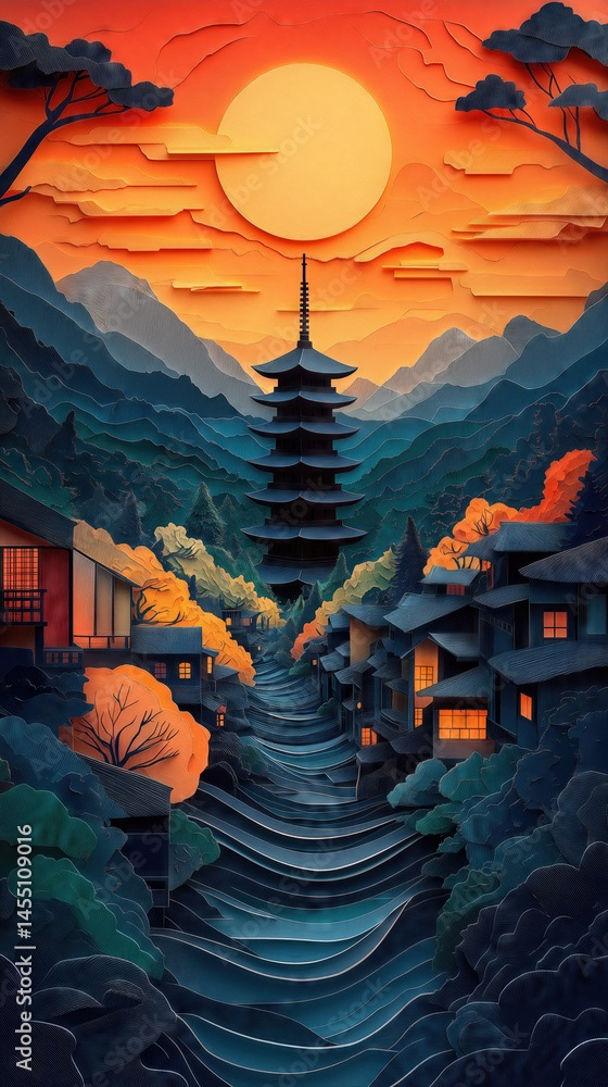 Papercut Kyoto Japan Pagoda